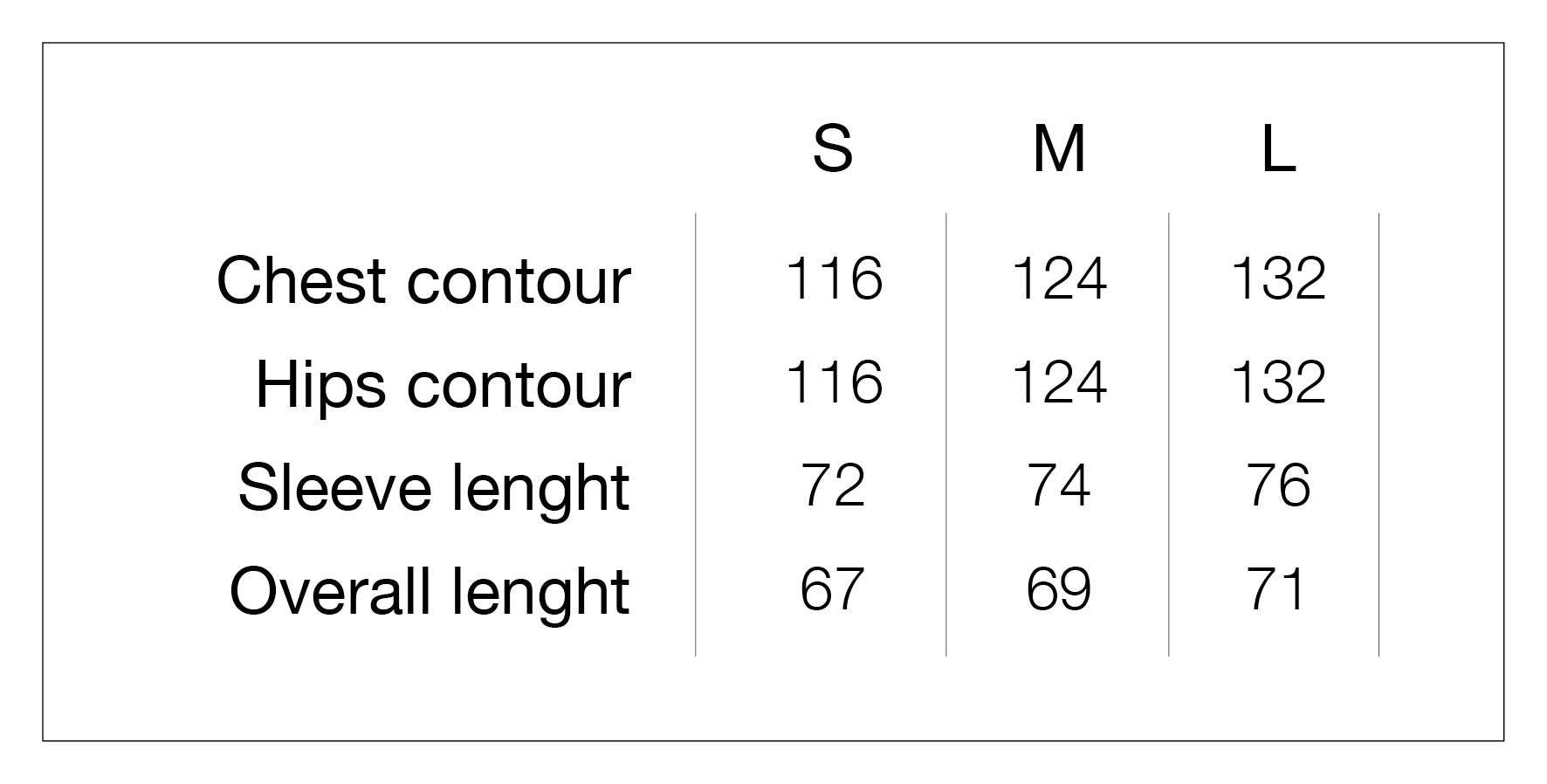 Measurements in cm