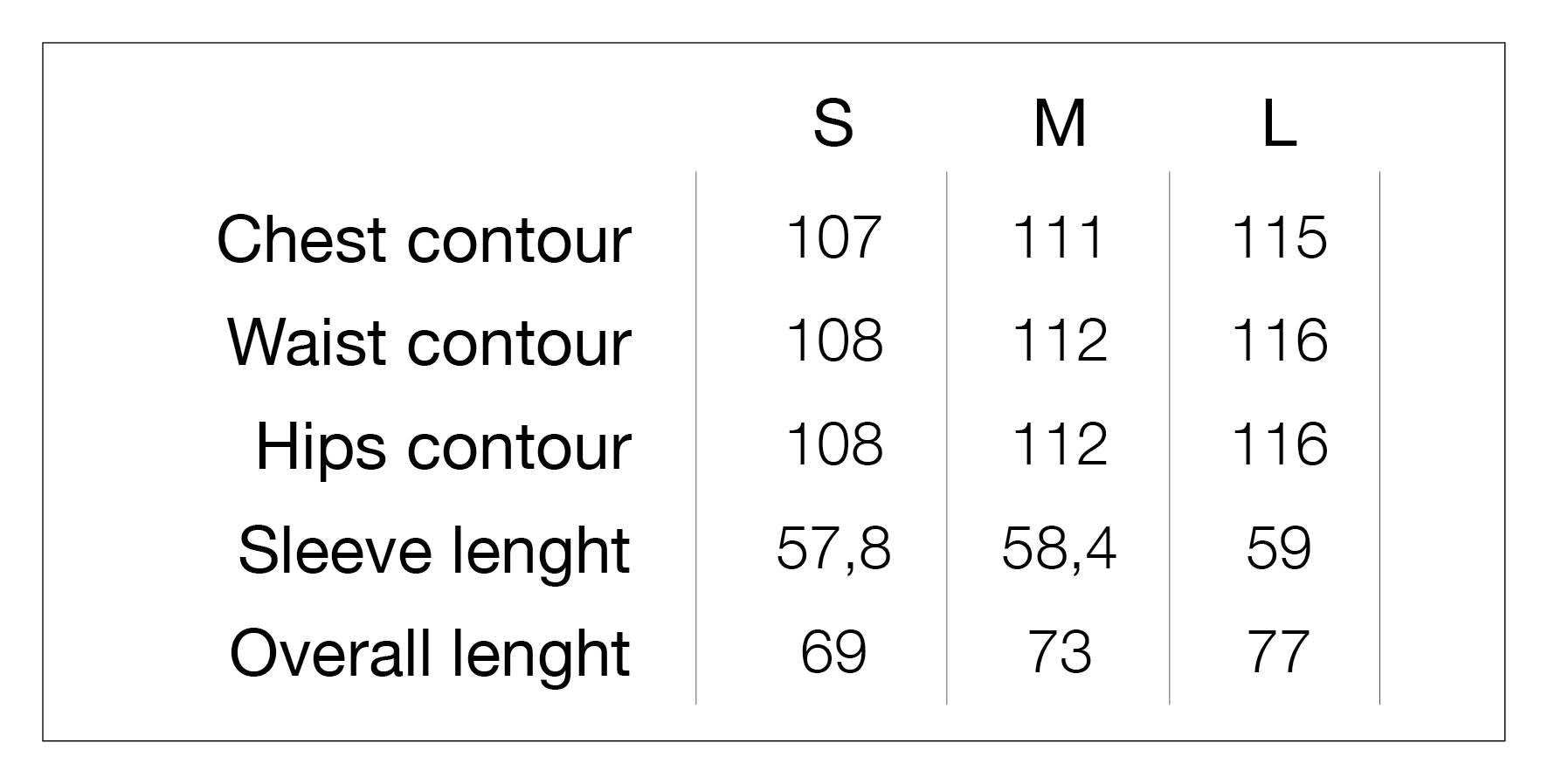Measurements in cm
